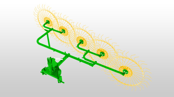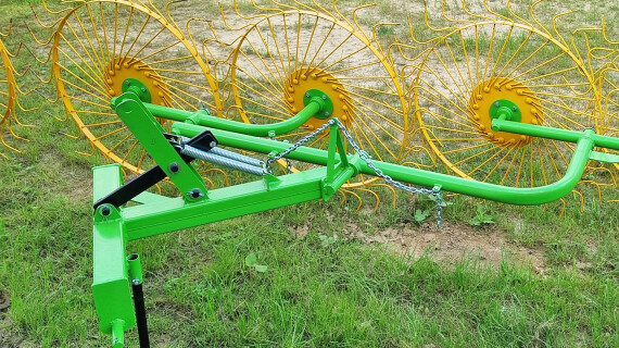 Усилена несущая конструкция граблей, стенки трубы имеют толщину 3,5 мм, что придает агрегату дополнительную прочность. Шарнирные соединения наполняются смазкой через пресс-масленки, облегчая обслуживание и увеличивая срок службы оборудования.