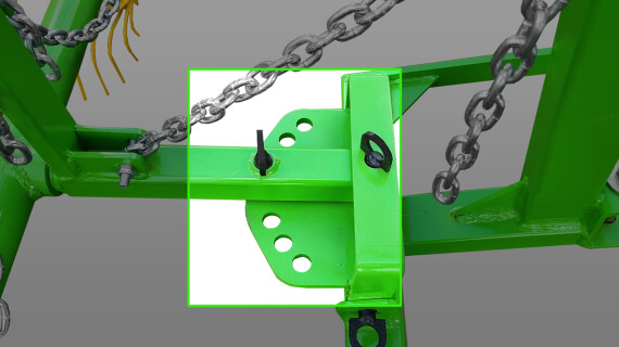 Грабли оснащены стандартной сцепкой под трехточечную навеску трактора. Чтобы увеличить универсальность, пальцы под крепление соединительных тяг имеют два размера: 22 мм и 28 мм. Тем самым грабли подходят к большинству тракторов как Китайского, Индийского производства, так и к тракторам производства стран ЕАЭС.