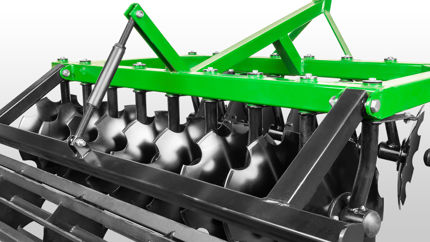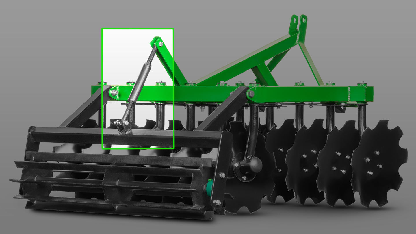 При совместном использовании бороны с катком, вы можете более точно настроить заглубление под каждый тип почвы. Каток имеет три точки крепления, что позволяет при помощи верхнего регулировочного винта изменять положение относительно бороны.