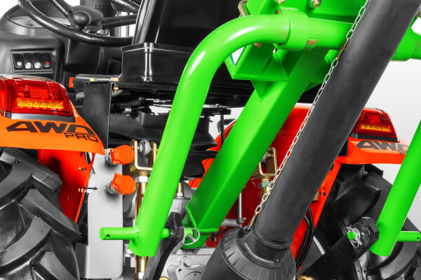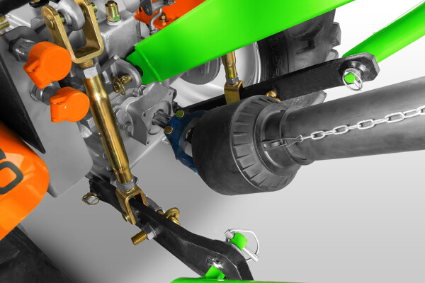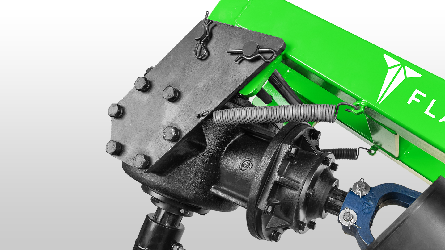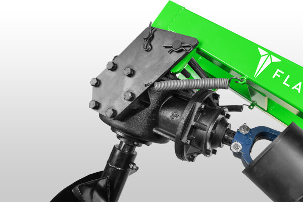 Редуктор закрепляется на раме при помощи 12-миллиметровых пластин, которые выдерживают повышенные нагрузки и исключают деформацию при работе. Для выравнивания горизонта шнека предусмотрена прорезь под первый крепежный палец. От раскачивания редуктора во время движения агрегат защищен удерживающей пружиной.