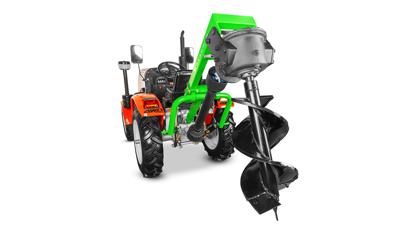 Ямобур устанавливается на тракторы при помощью стандартной трехточечной навески. Рамка выполнена из трубы диаметром 60 мм и толщиной стенки 5 мм. Нижние пальцы крепления навески имеют размеры 20 мм и 25 мм, а отверстие под верхний палец составляет 28 мм, благодаря чему ямобур совместим с навеской трактора 1 и 2 класса.