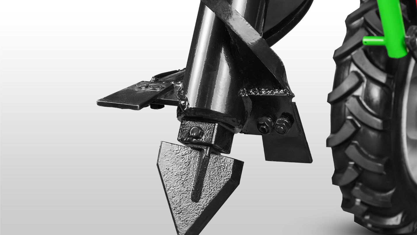 Одним из главных преимуществ ямобура является мощный редуктор весом около 200 кг, отлитый из высококачественного чугуна. Благодаря высокому весу редуктора, бур легко заглубляется в почву без необходимости принудительного опускания навески. Валы имеют внушительную толщину: 45 мм у входного вала и 60 мм у выходного под шнек, что дает значительный запас прочности для продолжительной работы.