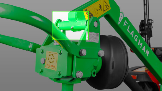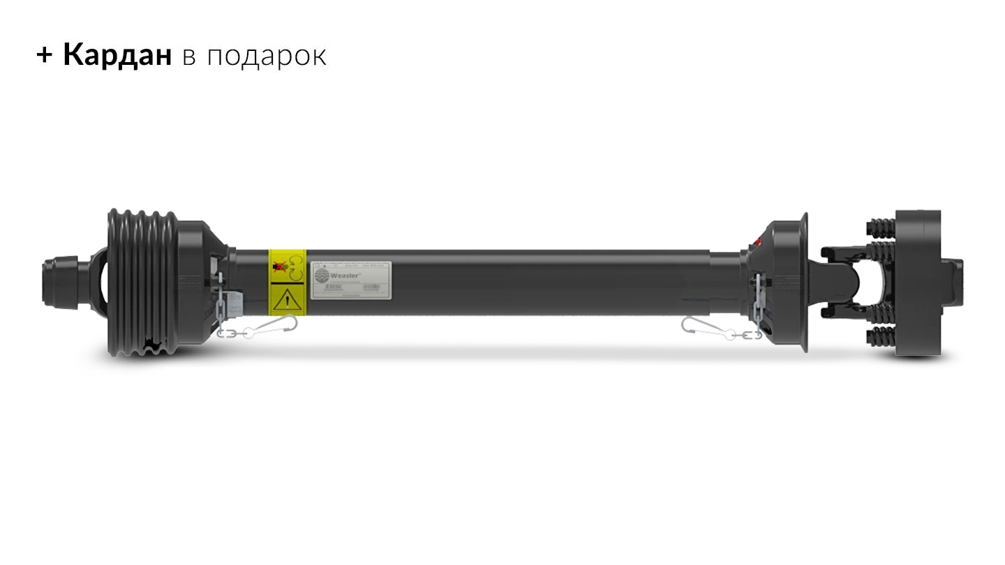 Для соединения агрегата с ВОМ трактора в комплект поставки входит телескопический карданный вал 6х6. Если трактор имеет выходной вал на 8 шлицев, потребуется переходная муфта, при этом, возможно, будет необходимо укоротить карданный вал.