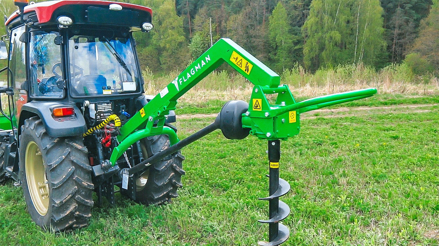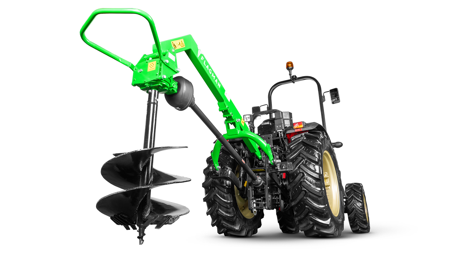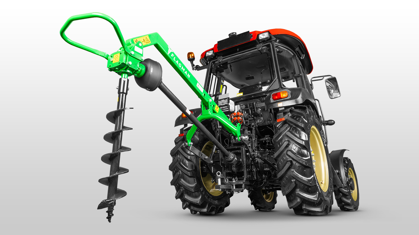 Ямобур М2 агрегатируется с тракторами мощностью от 50 л.с., и является самой мощной моделью в линейке Флагман.