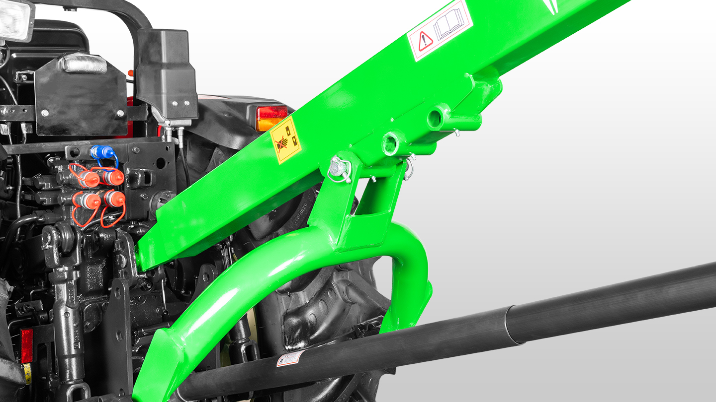 Трехточечная система навески надежно крепит агрегат на тракторе. Несущее плечо рамы изготовлено из толстостенного металлического профиля, сама рама шарнирно закрепляется вместо верхней тяги навески, что позволяет уменьшить количество соединений и увеличить общую жесткость конструкции.